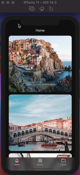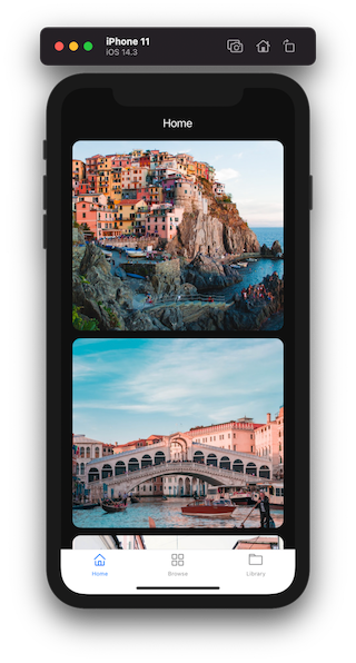 The tab bar we're building in this example app will display three different tabs. The first tab is used to display a list of items with images so that when the tab bar is added to the app, we can configure its translucency.